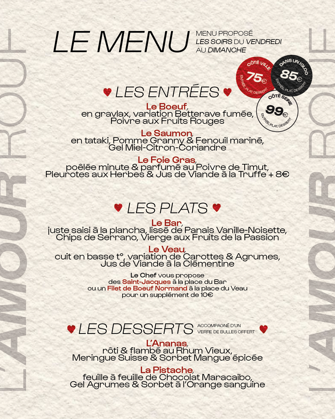 Entrée, Plat & Dessert à partir de 75€